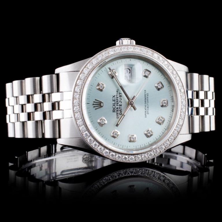Dial: Custom Blue Dial set with Diamond Hour Markers