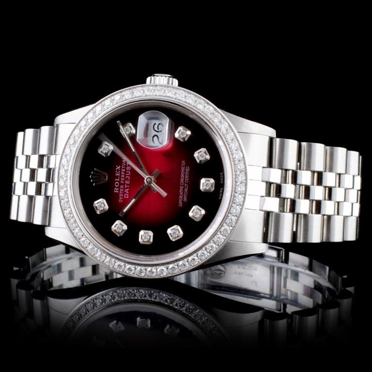 Dial: Custom Red Vignette Dial set with Diamond Hour Markers