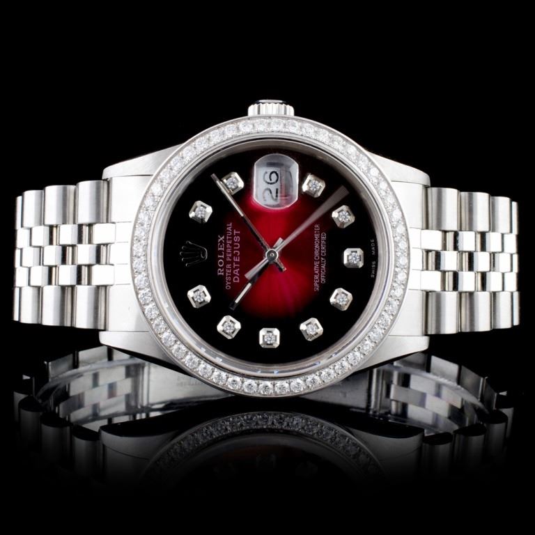 Dial: Custom Red Vignette Dial set with Diamond Hour Markers