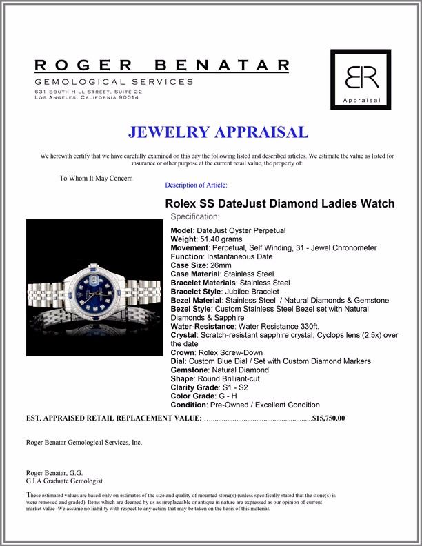 Dial: Custom Blue Dial / Set with Custom Diamond Markers