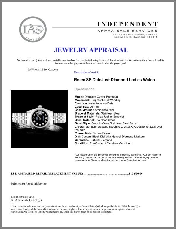 Regarding Appraised Jewelry and Loose Stones - Auctionfarm sends them out to a third party for Retail Replacement Value Appraisals, which are the most common. These types of evaluations are written for insurance needs. This would be the cost to replace the jewelry with an item of equal quality and kind, considered to be the current market price or the replacement value. This type of appraisal is done to protect you in the event of damage or loss of a valuable item. Our appraisals are conducted by independent 3rd Party appraisal firms that utilizes Certified GIA Gemologist. Appraisals should be used for verification of gemstone and/or metal weight, size, and grade only, not actual value. Appraisal value should be considered for insurance purposes only, not actual value, as price varies greatly from retail locations thru out the world. Items should not be purchased with the expectation to resell for appraisal price, or for profit.
