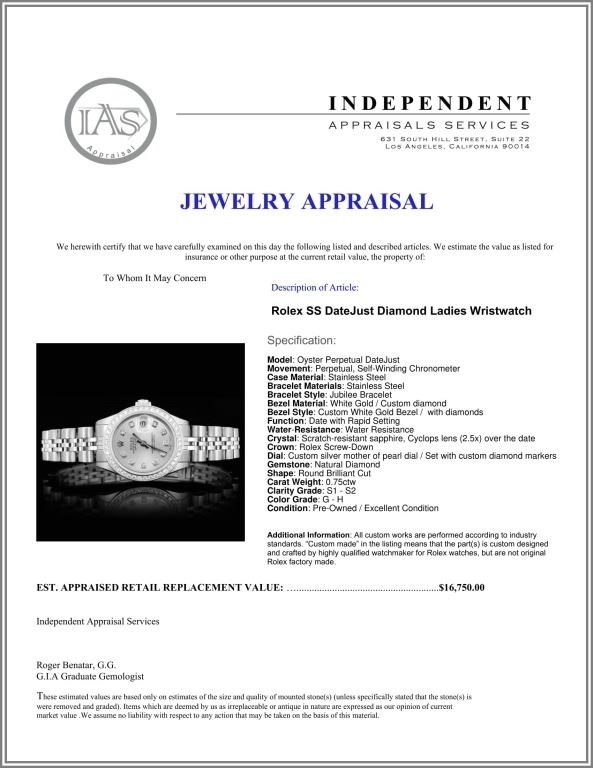 Dial: Custom silver mother of pearl dial / Set with custom diamond markers