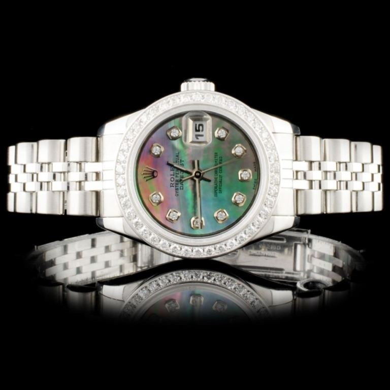 Dial: Custom Black Mop Dial / Set with Natural Diamonds Markers
