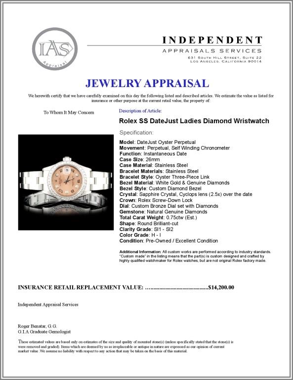 Regarding Appraised Jewelry and Loose Stones - Auctionfarm sends them out to a third party for Retail Replacement Value Appraisals, which are the most common. These types of evaluations are written for insurance needs. This would be the cost to replace the jewelry with an item of equal quality and kind, considered to be the current market price or the replacement value. This type of appraisal is done to protect you in the event of damage or loss of a valuable item. Our appraisals are conducted by independent 3rd Party appraisal firms that utilizes Certified GIA Gemologist. Appraisals should be used for verification of gemstone and/or metal weight, size, and grade only, not actual value. Appraisal value should be considered for insurance purposes only, not actual value, as price varies greatly from retail locations thru out the world. Items should not be purchased with the expectation to resell for appraisal price, or for profit.