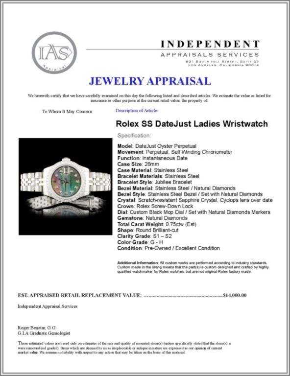 Regarding Appraised Jewelry and Loose Stones - Auctionfarm sends them out to a third party for Retail Replacement Value Appraisals, which are the most common. These types of evaluations are written for insurance needs. This would be the cost to replace the jewelry with an item of equal quality and kind, considered to be the current market price or the replacement value. This type of appraisal is done to protect you in the event of damage or loss of a valuable item. Our appraisals are conducted by independent 3rd Party appraisal firms that utilizes Certified GIA Gemologist. Appraisals should be used for verification of gemstone and/or metal weight, size, and grade only, not actual value. Appraisal value should be considered for insurance purposes only, not actual value, as price varies greatly from retail locations thru out the world. Items should not be purchased with the expectation to resell for appraisal price, or for profit.