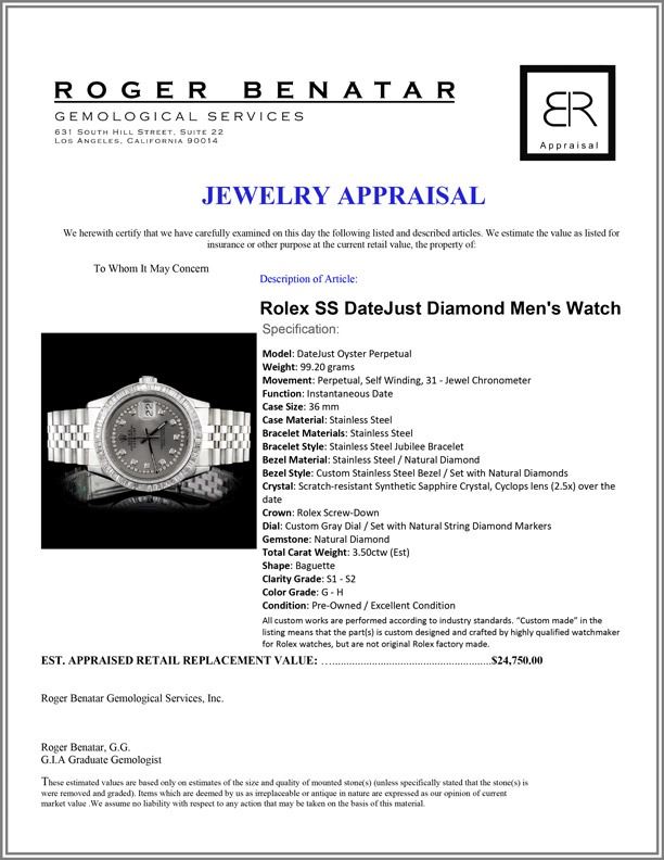 Dial: Custom Gray Dial / Set with Natural String Diamond Markers