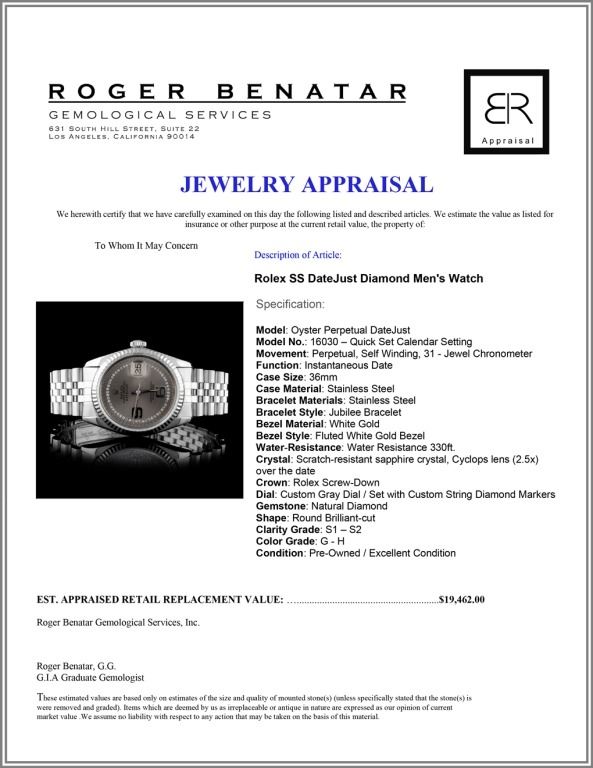 Dial: Custom Gray Dial / Set with Custom String Diamond Markers