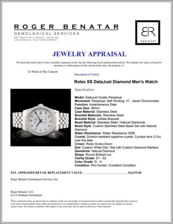 Dial: Custom White Dial / Set with Custom Diamond Markers