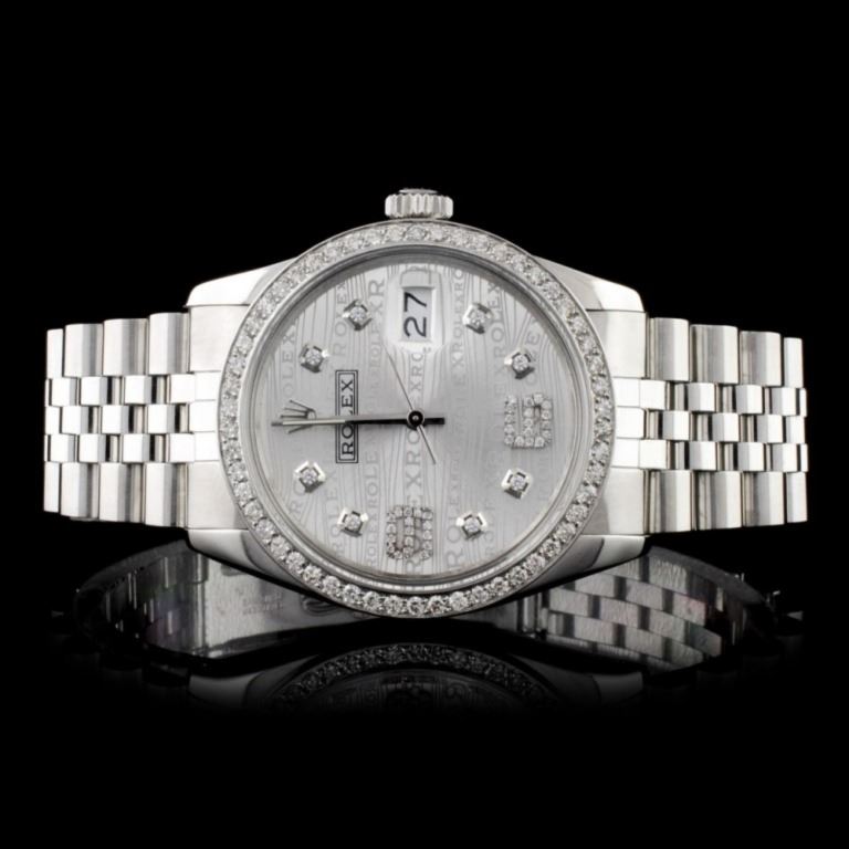 Dial: Custom Rolex Silver Dial / Set with Diamond Arabic Numeral and Markers