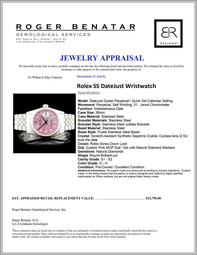 Dial: Custom Pink MOP Dial / Set with Natural Diamond Markers
