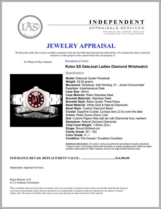 Dial: Custom Pigeon Red dial set with Diamonds hour markers