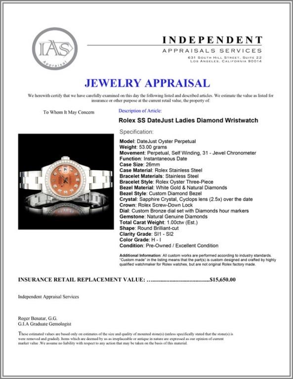 Dial: Custom Bronze dial set with Diamonds hour markers