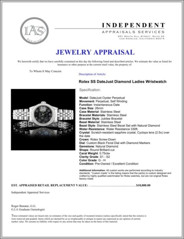 Regarding Appraised Jewelry and Loose Stones - Auctionfarm sends them out to a third party for Retail Replacement Value Appraisals, which are the most common. These types of evaluations are written for insurance needs. This would be the cost to replace the jewelry with an item of equal quality and kind, considered to be the current market price or the replacement value. This type of appraisal is done to protect you in the event of damage or loss of a valuable item. Our appraisals are conducted by independent 3rd Party appraisal firms that utilizes Certified GIA Gemologist. Appraisals should be used for verification of gemstone and/or metal weight, size, and grade only, not actual value. Appraisal value should be considered for insurance purposes only, not actual value, as price varies greatly from retail locations thru out the world. Items should not be purchased with the expectation to resell for appraisal price, or for profit.