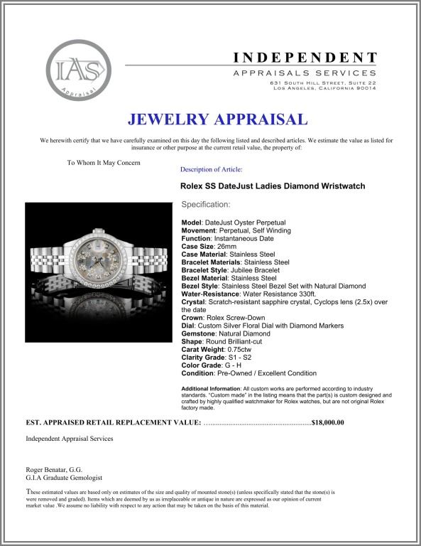 Dial: Custom Silver Floral Dial with Diamond Markers