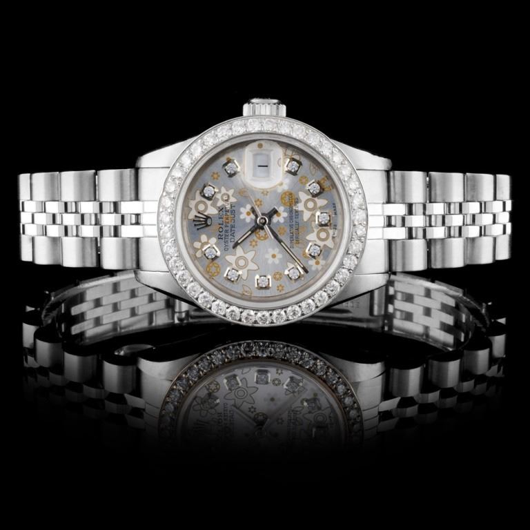 Dial: Custom Silver Floral Dial with Diamond Markers