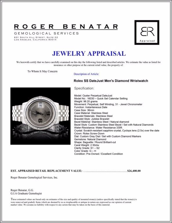 Dial: Custom Gray Dial / Set with Custom Diamond Markers