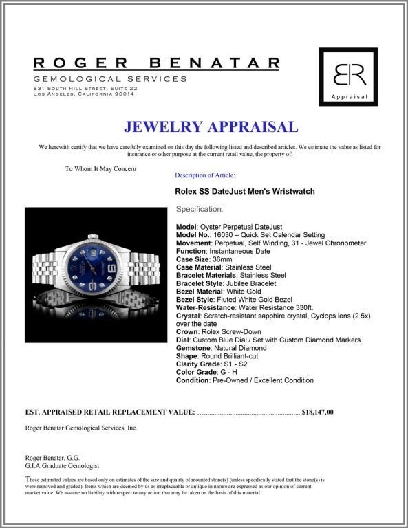 Dial: Custom Blue Dial / Set with Custom Diamond Markers