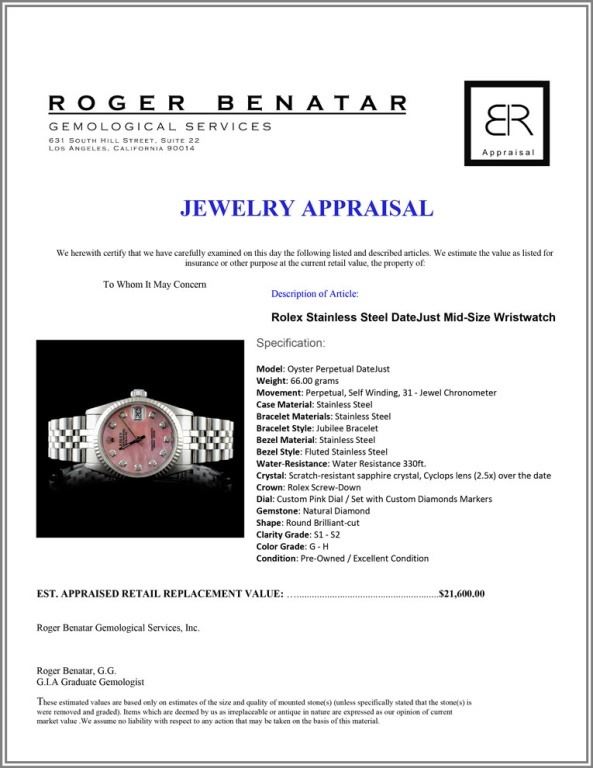 Dial: Custom Pink Dial / Set with Custom Diamonds Markers