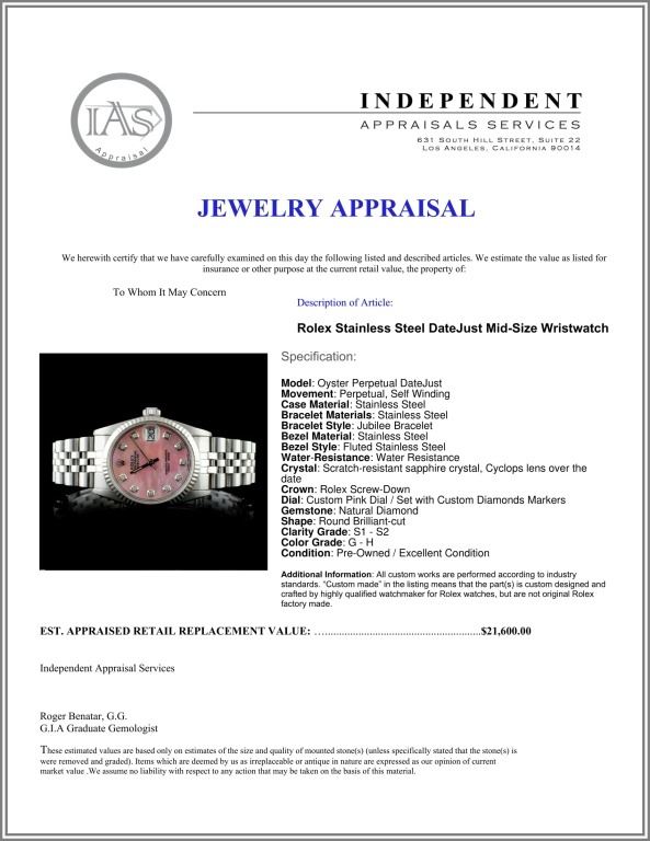 Dial: Custom Pink Dial / Set with Custom Diamonds Markers
