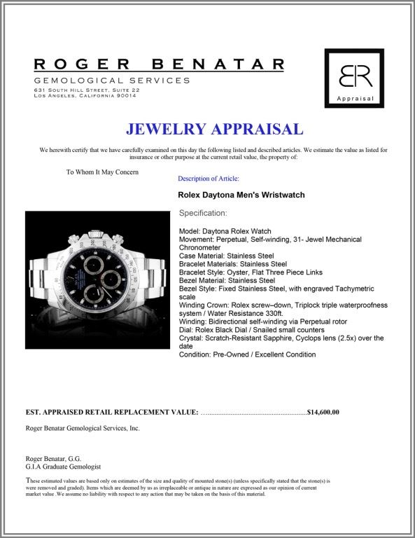 Movement: Perpetual, Self-winding, 31- Jewel Mechanical Chronometer