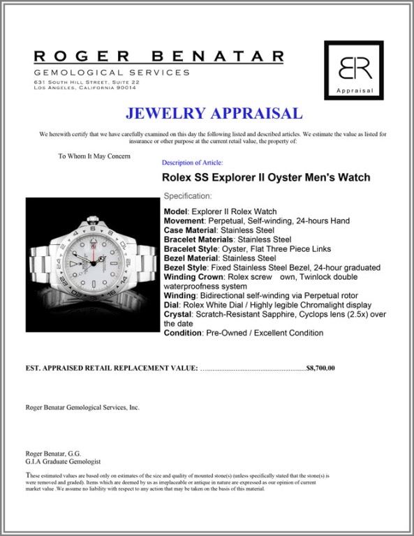 Dial: Rolex White Dial / Highly legible Chromalight display