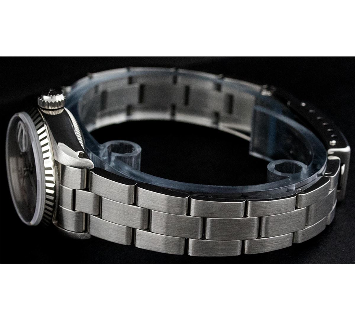 One Ladies Rolex Datejust Polished Bright with Satin Finish, Serviced & Electronically Tested, Stainless Steel Case:26mm, Stainless Steel Crown, Bezel:14K White Gold Fluted. Custom Crystal: Acrylic Cyclops Lens. Movement: Automatic Winding Movement Caliber 2030. Custom Dial: Slate Grey With Roman Hour Markers. Date Window: 3 O'Clock Position Date Display, Model: Datejust Condition: G-6 Extra Fine. Bracelet: Stainless Steel Oyster Band. Bright Polish & Satin Finish. 6.0 Inch Length, Adjustable. Standard Clasp, With Rolex Logo. Comes with a 6 month warranty card.