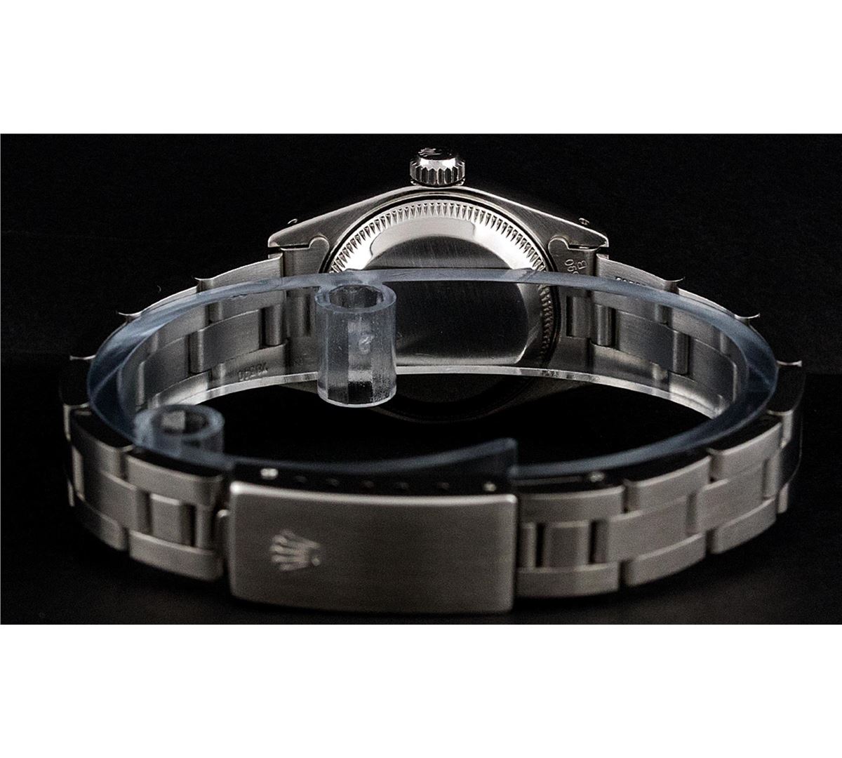 One Ladies Rolex Datejust Polished Bright with Satin Finish, Serviced & Electronically Tested, Stainless Steel Case:26mm, Stainless Steel Crown, Bezel:14K White Gold Fluted. Custom Crystal: Acrylic Cyclops Lens. Movement: Automatic Winding Movement Caliber 2030. Custom Dial: Slate Grey With Roman Hour Markers. Date Window: 3 O'Clock Position Date Display, Model: Datejust Condition: G-6 Extra Fine. Bracelet: Stainless Steel Oyster Band. Bright Polish & Satin Finish. 6.0 Inch Length, Adjustable. Standard Clasp, With Rolex Logo. Comes with a 6 month warranty card.