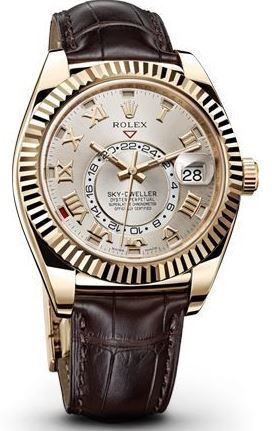 Model: 326138-0003 - CASE = [Material:18kt Yellow Gold], [Case Diameter:42], [Bezel:Bi-directional Rotating 18kt Yellow Gold], [Case Back:Solid], [Water Resistant:100 Meters - 330 Feet], [Crystal:Scratch Resistant Sapphire], DIAL = [Color:Silver Sunray Roman Numeral], MOVEMENT = [Type:Automatic Self Winding], [Crown:Screw Down], BAND = [Clasp:Folding Oysterlock], [Type:Brown Leather], (Usually ships in 2 to 4 business days.)