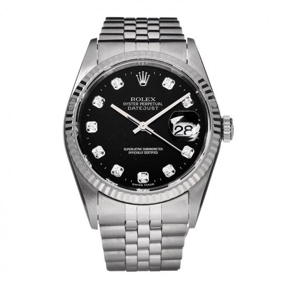 Style: Stainless Steel 18k White Gold Diamond 36mm Oyster Perpetual Datejust Watch Black 16234