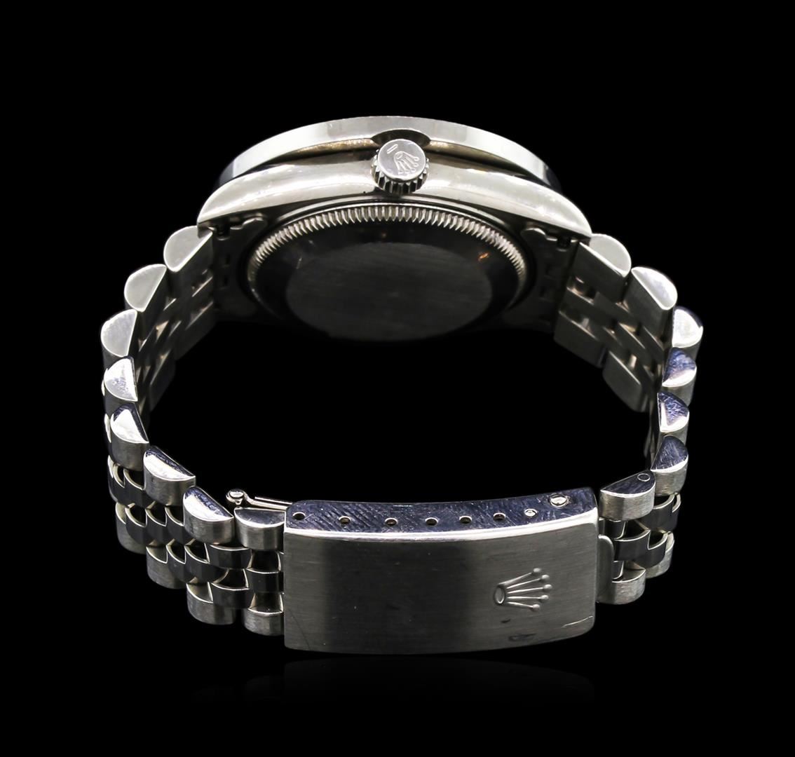 One, hand crafted & machine milled Rolex DateJust Mid-Size wristwatch electronically tested stainless steel, Case: 30mm oyster, Crown: twinlock with logo, non-factory custom Bezel: diamond set, non-factory custom Crystal: synthetic sapphire cyclops lens, Circa: 1994.Movement: automatic, non-factory custom Dial: mother of pearl, with baton hands, and diamond markers, Date Window: 3 o'clock position, quick-set, Bracelet: stainless steel jubilee, bright polish & brushed finish, Condition: G-5 Fine. Six inch length, adjustable. Standard clasp, with logo. Containing: Forty One channel set round brilliant cut diamonds, approximate total weight equals 1.72ct. Set & graded in the custom bezel. Clarity: I-1 to I-2. Color: H - I. Total Weight of Diamonds 1.72ct. Total Weight of Watch 66.82gm. AIG Appraised at $9,550.00.