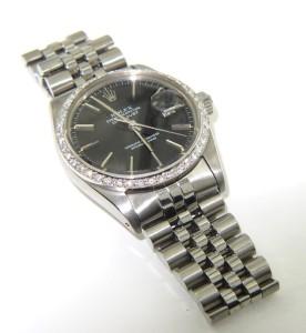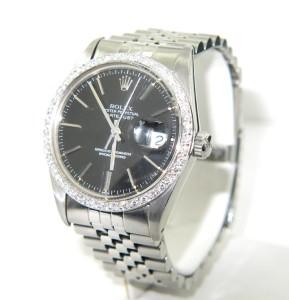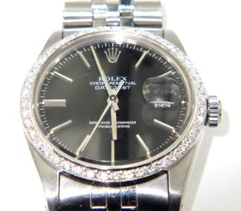 Rolex Stainless Steel Oyster Perpetual Date Just Diamond Watch.The total watch's weight is 90 grams.The total weight of diamond is 1.8 ct. approximately, H color, VS - SI clarity.The size of watch head: 35 x 35 mm and 11 mm thick.The length of the watch is 8.5".Swiss Made.Water Resistant.Chain is 19 mm wide