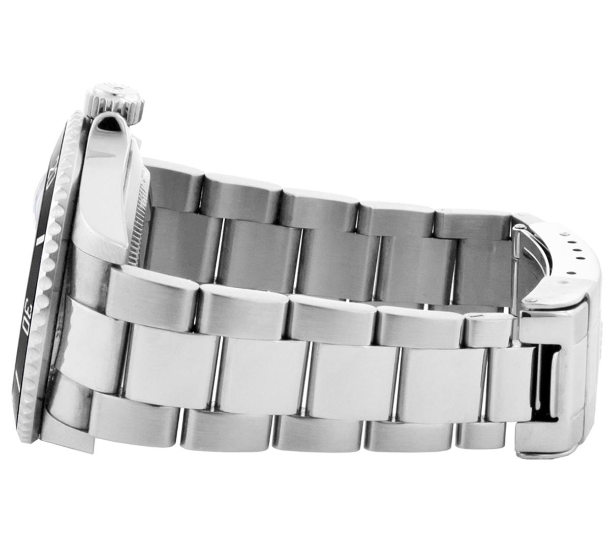 One Mens Rolex Submariner With Date Polished, Serviced & Electronically Tested, Stainless Steel Case:41mm, Stainless Steel Crown, Bezel: Stainless Steel Rotatable Bezel With Black Insert. Crystal: Synthetic Sapphire Cyclops Lens. Movement: Automatic Winding Movement Caliber 3135. Custom Dial: Blue Submariner Dial. Date Window: 3 O'Clock Position Date Display, Model: Submariner 16610, Quickset, Condition: G-6 Extra Fine. Bracelet: Stainless Steel Oyster. Bright Polish & Satin Finish. 6.75 Inch Length, Adjustable. Standard Clasp, With Rolex Logo.