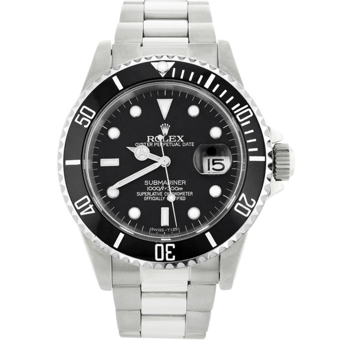 One Mens Rolex Submariner With Date Polished, Serviced & Electronically Tested, Stainless Steel Case:41mm, Stainless Steel Crown, Bezel: Stainless Steel Rotatable Bezel With Black Insert. Crystal: Synthetic Sapphire Cyclops Lens. Movement: Automatic Winding Movement Caliber 3135. Dial: Black Submariner Dial. Date Window: 3 O'Clock Position Date Display, Model: Submariner 16610, Quickset, Condition: G-6 Extra Fine. Bracelet: Stainless Steel Oyster. Bright Polish & Satin Finish. 6.75 Inch Length, Adjustable. Standard Clasp, With Rolex Logo.