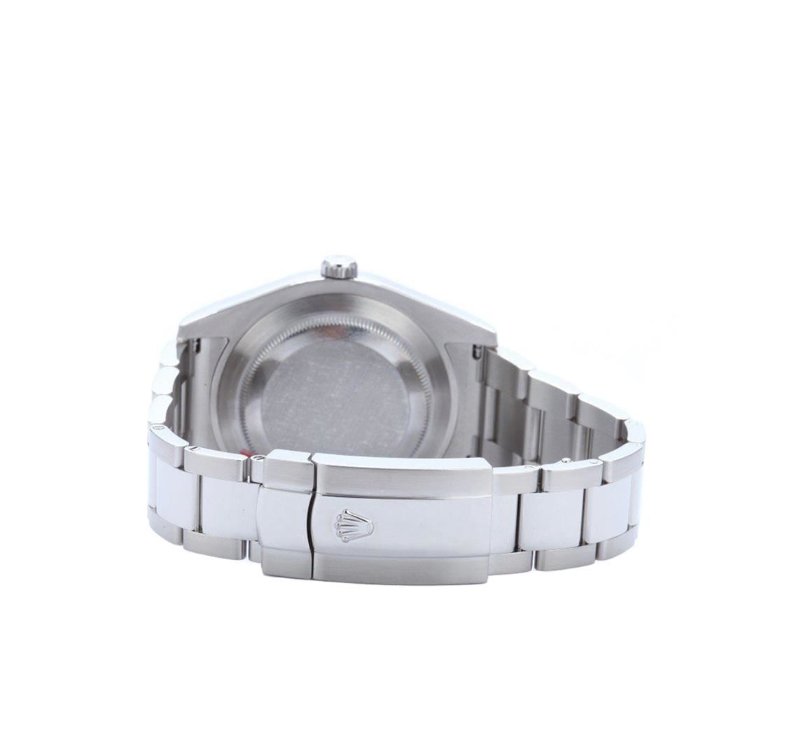 One gents stainless steel Rolex DateJust wristwatch. Model Name/Number: Datejust 116300. The watch features automatic movement with date, quickset, scratch-resistant sapphire crystal, waterproof screw-down crown. Case: Stainless steel with smooth bezel (41 mm), inner reflector ring engraved with serial number. Dial: Black with Roman numeral hour markers. Bracelet: Stainless Steel Oyster.