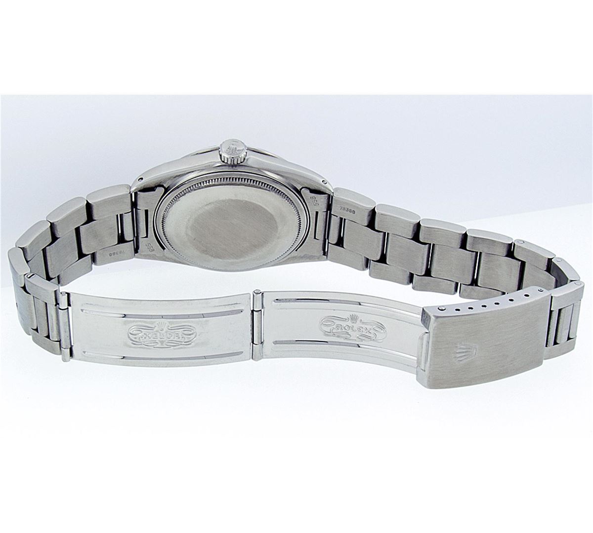 One Gents Rolex Stainless Steel Datejust Polished Bright with Satin Finish, Serviced & Electronically Tested, Stainless Steel Case: 36mm, Stainless Steel Crown, Bezel: Stainless Steel Smooth Bezel. Crystal: Synthetic Sapphire Cyclops Lens. Movement: Automatic Winding Movement Caliber 3135. Dial: Cream Roman Dial. Date Window: 3 O'Clock Position Date Display, Quickset, Model: Datejust. Condition: G-6 Extra Fine. Bracelet: Stainless Steel Oyster Band. Bright Polish & Satin Finish. 7.0 Inch Length, Adjustable. Standard Clasp, With Rolex Logo. Comes with 6 month warranty.
