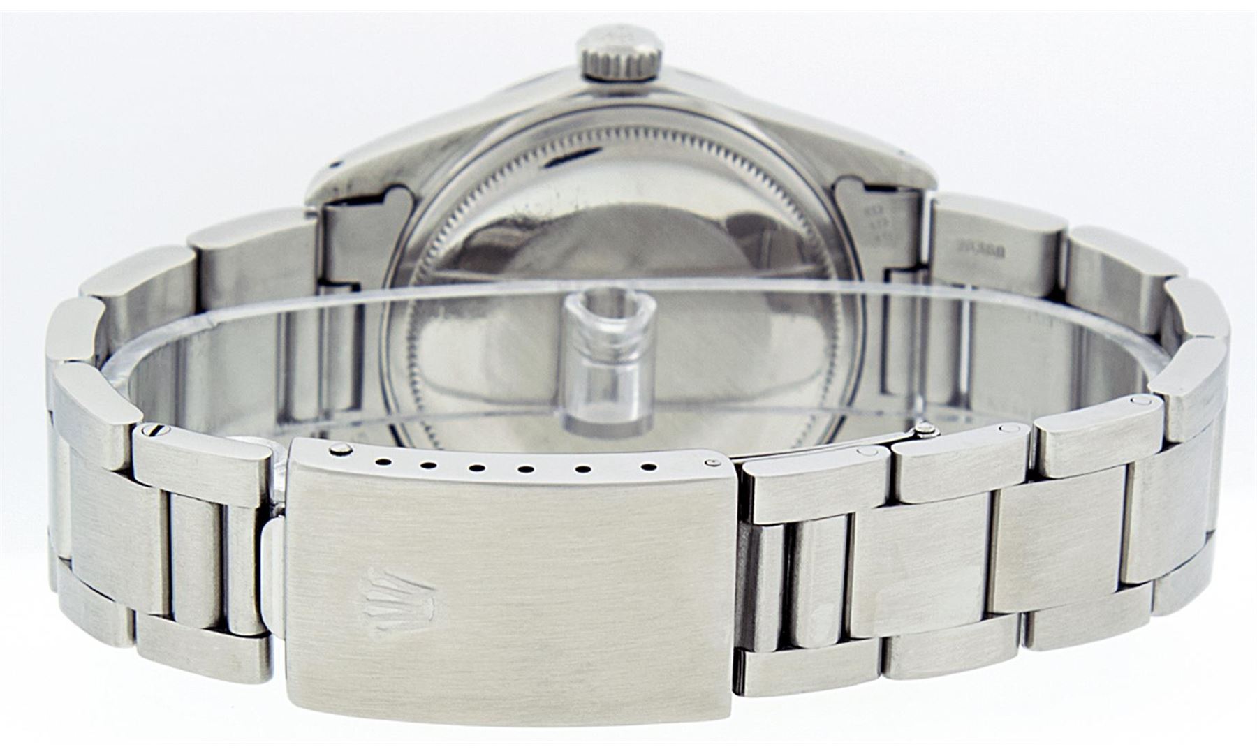 One Gents Rolex Stainless Steel Datejust Polished Bright with Satin Finish, Serviced & Electronically Tested, Stainless Steel Case: 36mm, Stainless Steel Crown, Bezel: Stainless Steel Smooth Bezel. Crystal: Synthetic Sapphire Cyclops Lens. Movement: Automatic Winding Movement Caliber 3135. Dial: Cream Roman Dial. Date Window: 3 O'Clock Position Date Display, Quickset, Model: Datejust. Condition: G-6 Extra Fine. Bracelet: Stainless Steel Oyster Band. Bright Polish & Satin Finish. 7.0 Inch Length, Adjustable. Standard Clasp, With Rolex Logo. Comes with 6 month warranty.