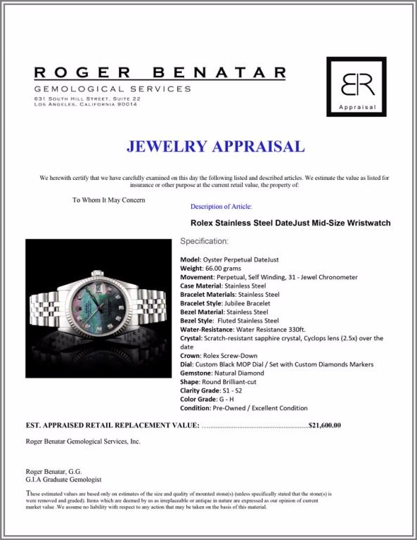 Dial: Custom Black MOP Dial / Set with Custom Diamonds Markers