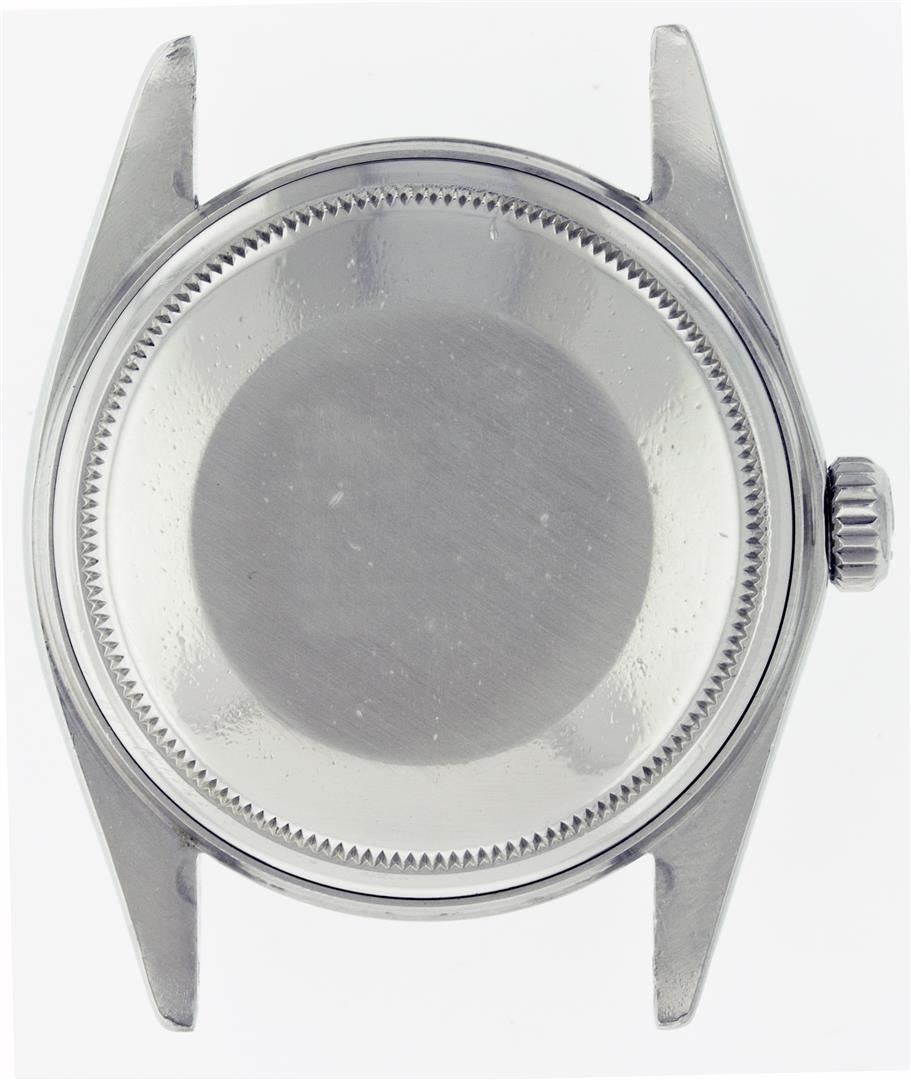 One Gents Rolex Datejust Polished, Serviced & Electronically Tested, Stainless Steel Case:36mm, Stainless Steel Crown, Original Bezel: 18K White Gold Fluted Bezel. Custom Crystal: Acrylic Cyclops Lens. Movement: Automatic Winding Movement Caliber 3035. Custom Dial: Black Diamond Dial With Track, Diamond Count: 10 Diamonds, Clarity: SI-VS, Color: G to H. Date Window: 3 O'Clock Position Date Display, Quickset, Model: 16014 Condition: G-6 Extra Fine. Bracelet: Stainless Steel Jubilee. Bright Polish & Satin Finish. 6.5 Inch Length, Adjustable. Standard Clasp, With Rolex Logo.