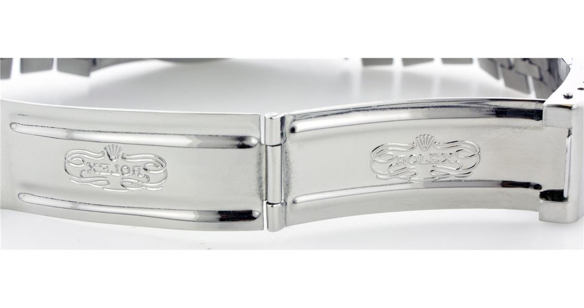 One Gents Rolex Datejust Polished, Serviced & Electronically Tested, Stainless Steel Case:36mm, Stainless Steel Crown, Bezel: 18K White Gold Fluted Bezel. Custom Crystal: Acrylic Cyclops Lens. Movement: Automatic Winding Movement Caliber 3035. Custom Dial: Grey Dial With Diamond Hour Markers, Diamond Count: 10 Diamonds, Clarity: SI-VS, Color: G To H. Date Window: 3 O'Clock Position Date Display, Quickset, Model: 16014 Condition: G-6 Extra Fine. Bracelet: Stainless Steel Jubilee. Bright Polish & Satin Finish. 6.5 Inch Length, Adjustable. Standard Clasp, With Rolex Logo.