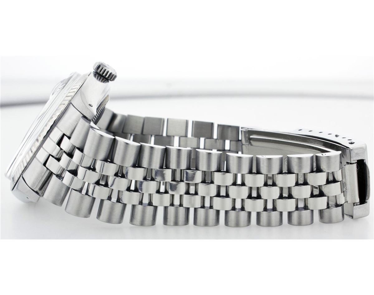 One Gents Rolex Datejust Polished, Serviced & Electronically Tested, Stainless Steel Case:36mm, Stainless Steel Crown, Bezel: 18K White Gold Fluted Bezel. Custom Crystal: Acrylic Cyclops Lens. Movement: Automatic Winding Movement Caliber 3035. Custom Dial: Grey Dial With Diamond Hour Markers, Diamond Count: 10 Diamonds, Clarity: SI-VS, Color: G To H. Date Window: 3 O'Clock Position Date Display, Quickset, Model: 16014 Condition: G-6 Extra Fine. Bracelet: Stainless Steel Jubilee. Bright Polish & Satin Finish. 6.5 Inch Length, Adjustable. Standard Clasp, With Rolex Logo.