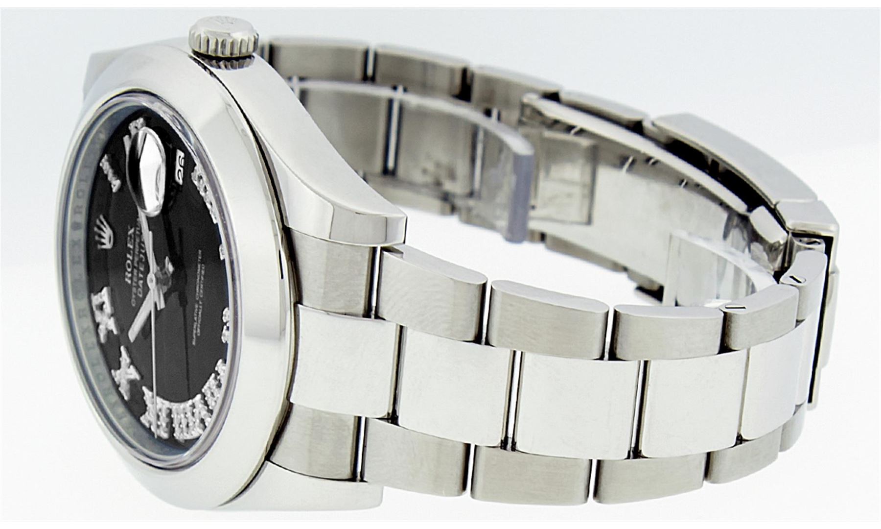 One Mens Rolex Datejust 2 Polished Bright with Shiny Finish, Serviced & Electronically Tested, Stainless Steel Case:41mm, Stainless Steel Crown, Bezel: Stainless Steel Smooth Bezel, . Crystal: Synthetic Sapphire Cyclops Lens. Movement: Automatic Winding Movement Caliber 3136. Custom Dial: Dark Slate Roman Diamond Dial, Diamond Color: G To H, Clarity: SI-VS. Date Window: 3 O'Clock Position Date Display, Quickset, Model: 116300 Datejust 2. Condition: G-6 Extra Fine The Watch Is In Very Good Condition Free Of All Scratches And Dents. Bracelet: Stainless Steel Oyster Band. Bright Polish & Satin Finish. 7.5 Inch Length, Adjustable. Standard Clasp, With Rolex Logo. Comes with 6 month warranty.
