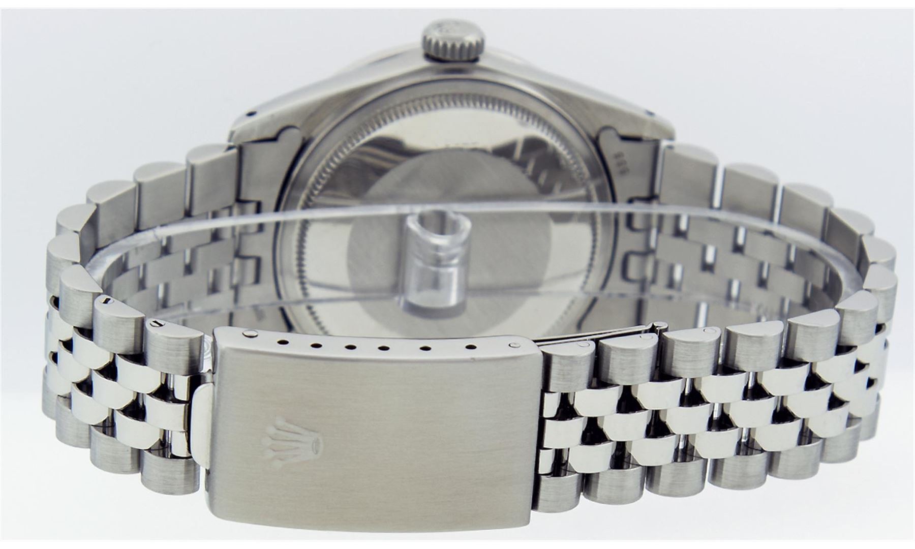 One Mens Rolex Datejust Polished Bright with Satin Finish, Serviced & Electronically Tested, Stainless Steel Case:36mm, Diamond Lugs: 24 Diamonds In Lugs, Color: G to H, Clarity: SI-VS. Stainless Steel Crown, Bezel: 14K White Gold Fluted Bezel. Custom Crystal: Acrylic Cyclops Lens. Movement: Automatic Winding Movement Caliber 3035. Custom Dial: Mother Of Pearl Diamond Dial, Diamond Count: 10 Diamonds In Dial, Diamond Color: G To H In Color, Clarity: SI-VS. Date Window: 3 O'Clock Position Date Display, Quickset, Model: Datejust Condition: G-6 Extra Fine, The Watch Is In Very Good Condition Free Of All Scratches And Dents. Bracelet: Stainless Steel Jubilee Band. Bright Polish & Satin Finish. 7.0 Inch Length, Adjustable. Standard Clasp, With Rolex Logo. Comes with 6 month warranty.