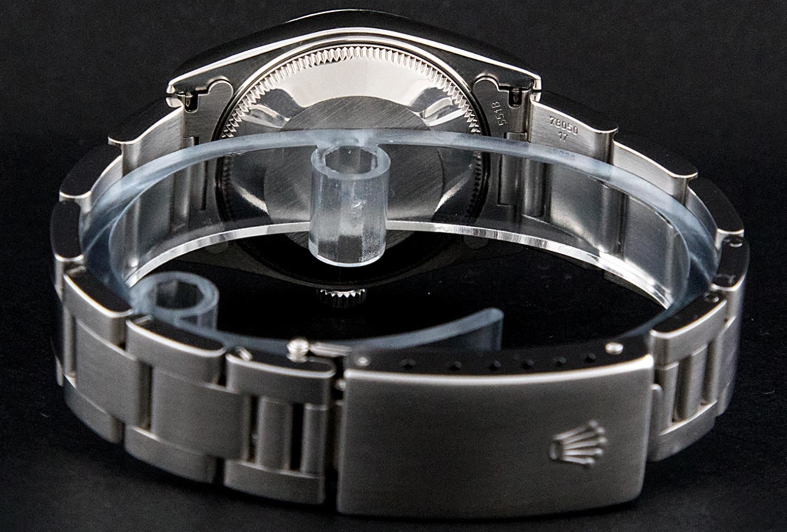 One Midsize Stainless Steel Rolex Datejust Polished, Serviced & Electronically Tested, Stainless Steel Case Case:31mm, Stainless Steel Crown, Bezel: Stainless Steel Smooth Bezel, Custom Crystal: Synthetic Sapphire Cyclops Lens. Movement: Automatic Winding Movement Caliber 2135. Custom Dial: Salmon Roman Dial With Square Track. Date Window: 3 O'Clock Position Date Display, Quickset, Model: Midsize Datejust. Condition: G-6 Extra Fine. Bracelet: Stainless Steel Oyster Band. Bright Polish. 6.0 Inch Length, Adjustable. Standard Clasp, With Rolex Logo.