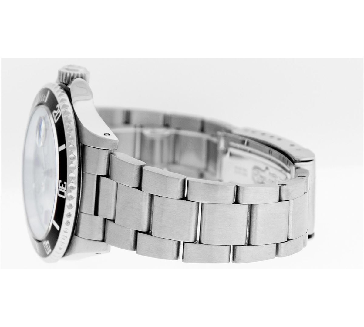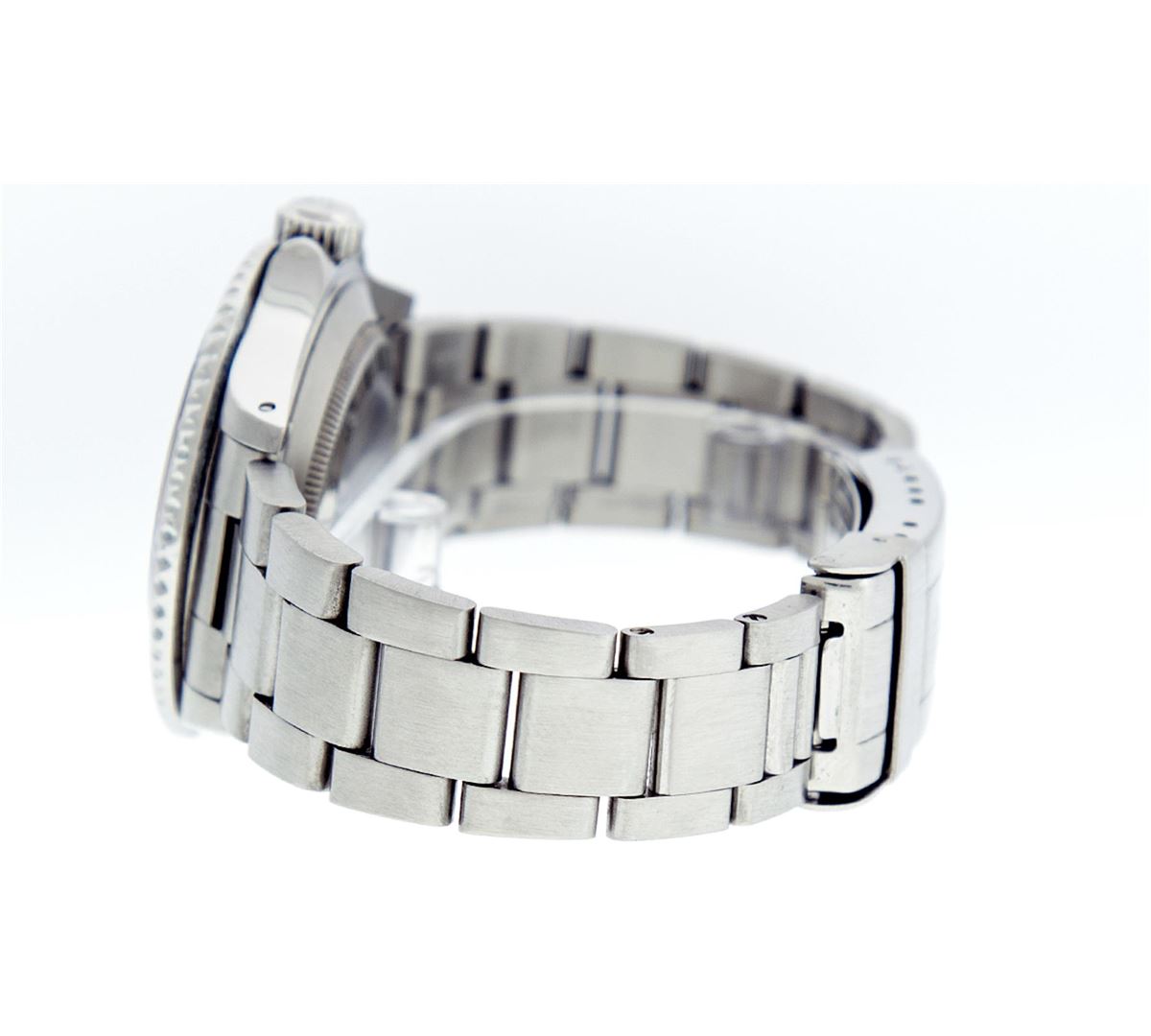 One Mens Rolex Submariner With Date Polished, Serviced & Electronically Tested, Stainless Steel Case:41mm, Stainless Steel Crown, Bezel: Stainless Steel Rotatable Bezel With Black Insert. Crystal: Synthetic Sapphire Cyclops Lens. Movement: Automatic Winding Movement Caliber 3135. Custom Dial: Silver Serti Diamond & Ruby Dial, Diamond Count: 8 Diamonds + 2 Baguette Ruby, Color: G To H, Clarity: SI-VS. Date Window: 3 O'Clock Position Date Display, Model: Submariner 16610, Quickset, Condition: G-6 Extra Fine. Bracelet: Stainless Steel Oyster. Bright Polish & Satin Finish. 7.0 Inch Length, Adjustable. Standard Clasp, With Rolex Logo. Comes with 6 month warranty.