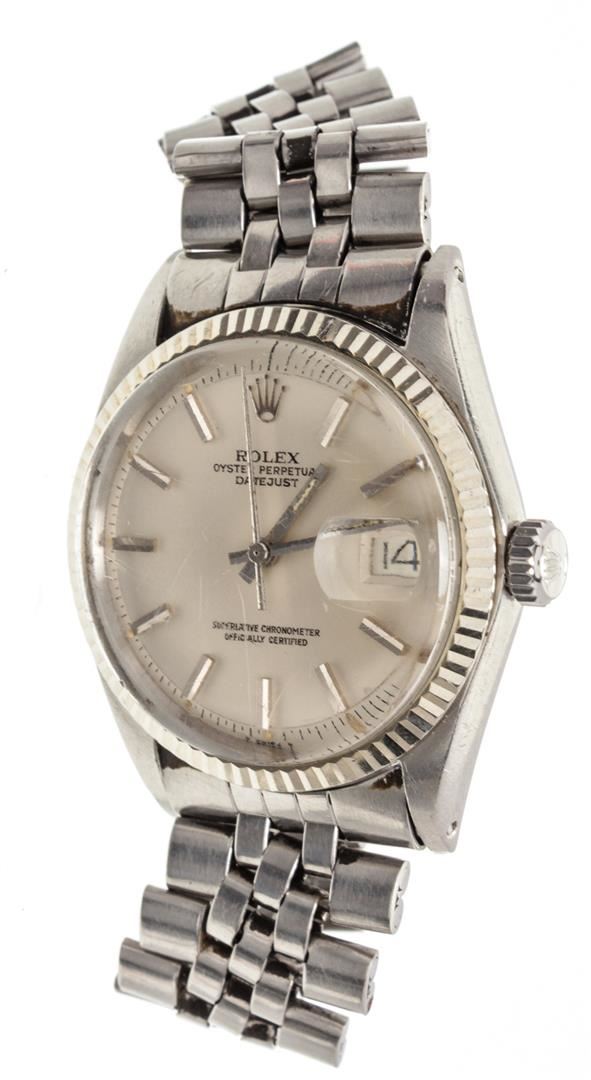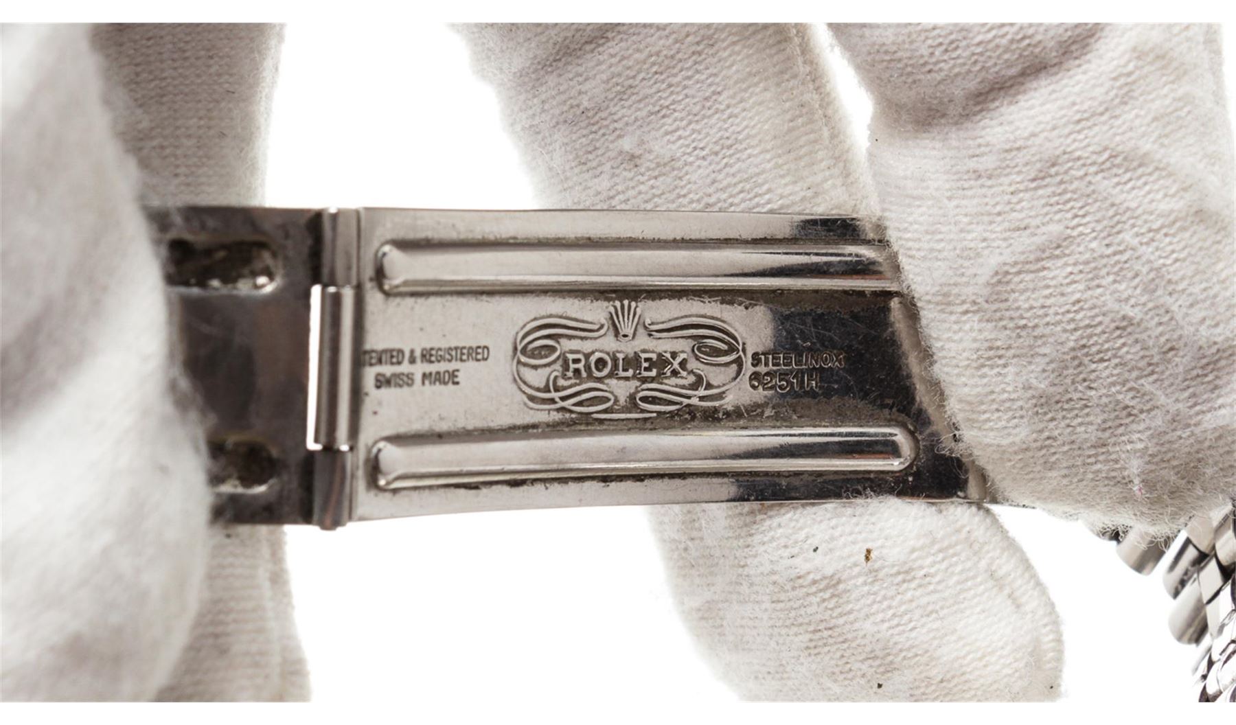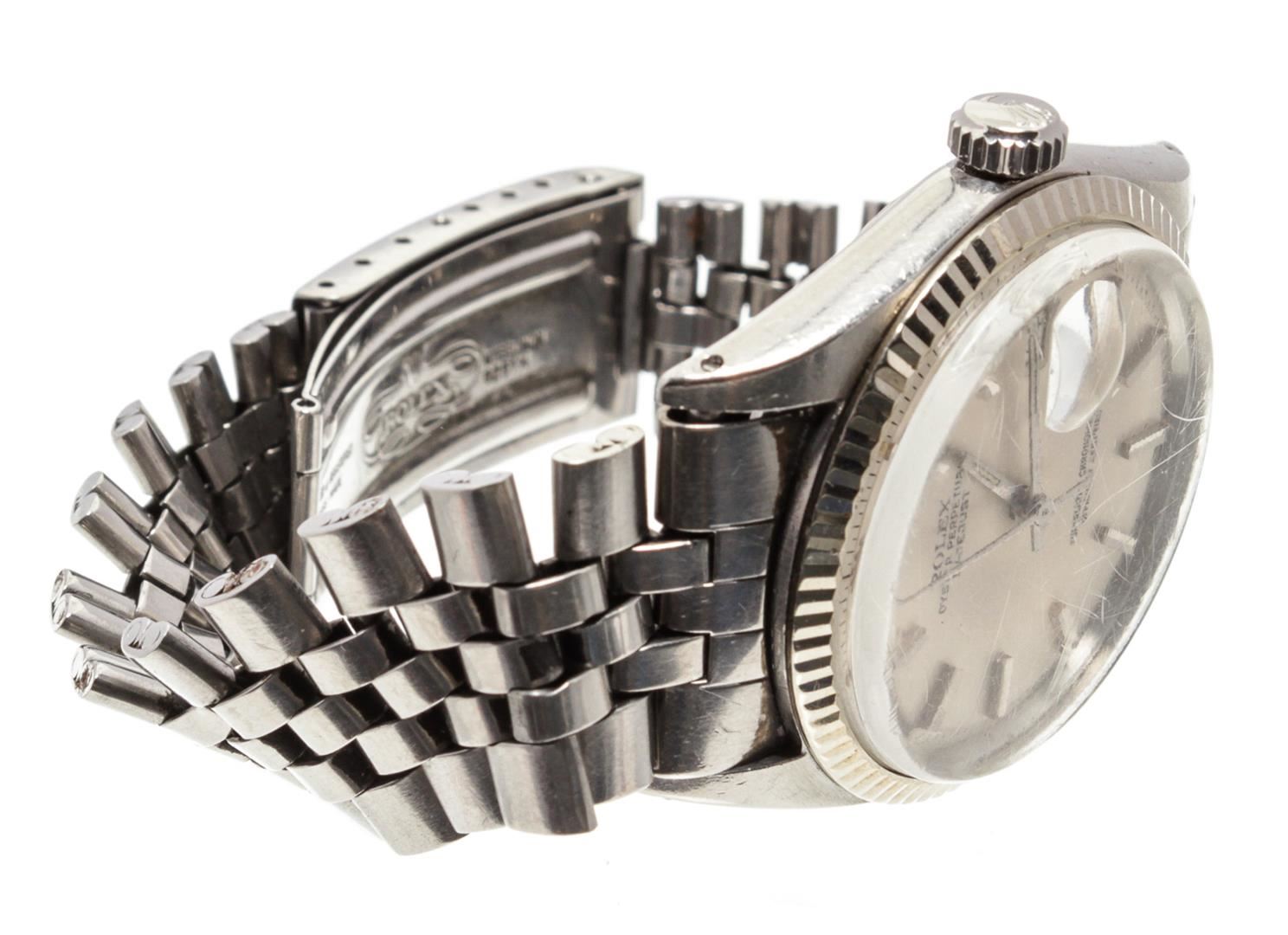 One Rolex Stainless Steel Silver Dial Datejust Watch Ref 1601. Clap Closure. CON