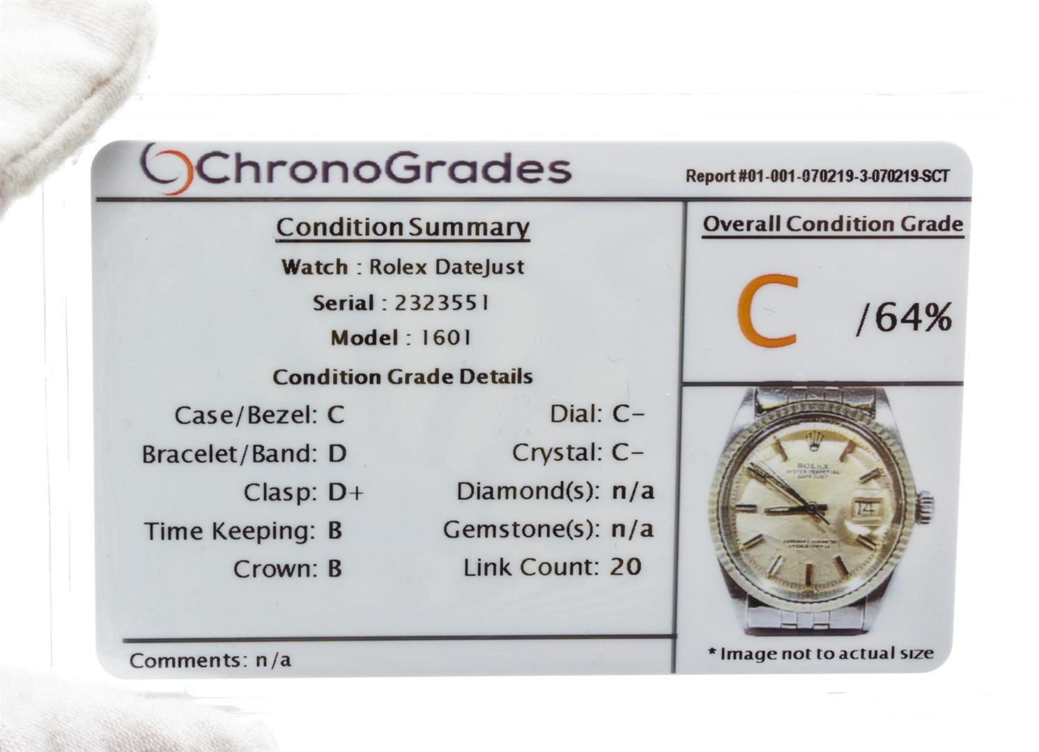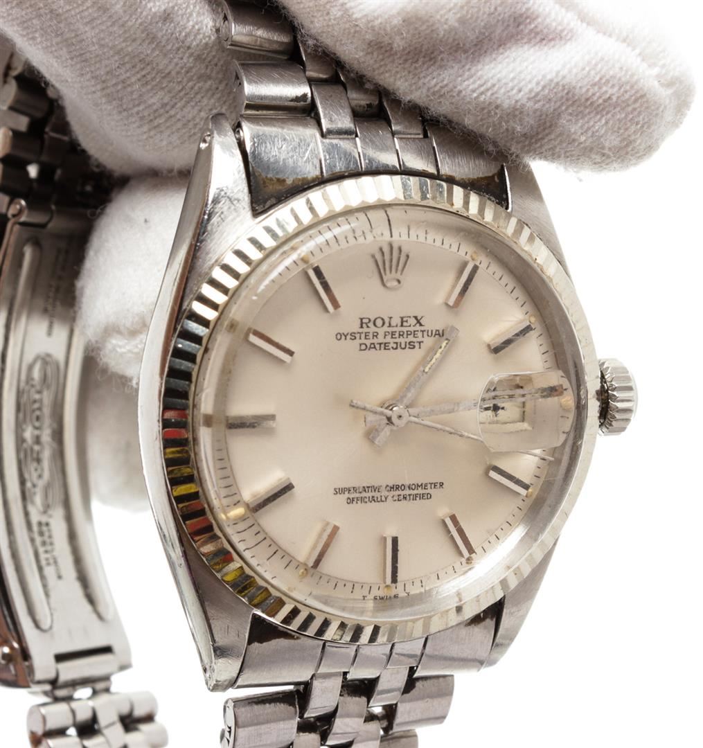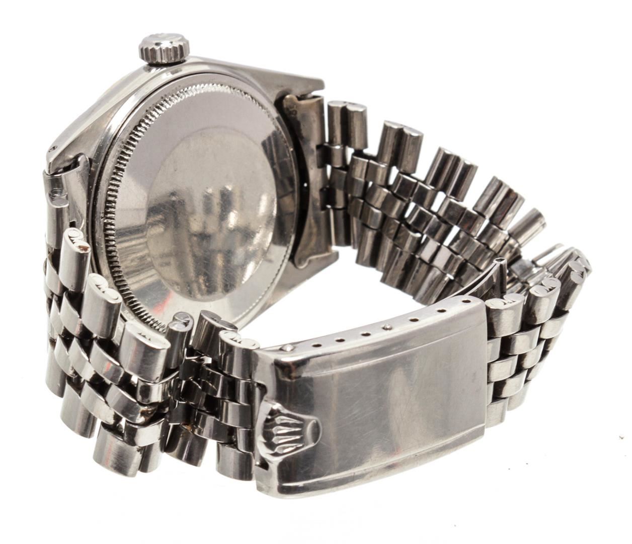 One Rolex Stainless Steel Silver Dial Datejust Watch Ref 1601. Clap Closure. CON