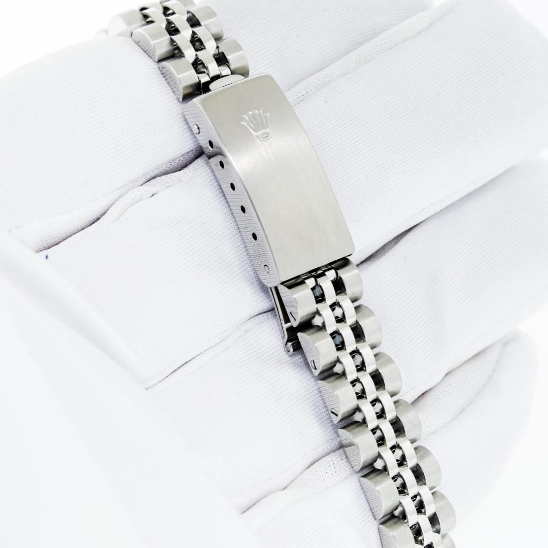 One Ladies Pre Owned Quickset Stainless Steel Rolex Date Polished Bright with Satin Finish Serviced & Electronically Tested, Rolex Stainless Steel Case: 26mm, Rolex Stainless Steel Crown, Custom Bezel: New White Gold Beadset + Emerald Diamond Bezel, Diamond Count: 28 Diamonds + 4 Emeralds. Custom Crystal: New Sapphire With Date Window. Custom Hands: New Luminescent Hands. Rolex Movement: Automatic Winding Movement. Rolex Dial: Silver Index Dial With Dash Track And Lumi Dot. Date Window: 3 O'Clock Position Date Display, Model: Datejust. Condition: G-6 Extra Fine. Rolex Bracelet: Stainless Steel Jubilee Band With Rolex Crown On Buckle. Bright Polish & Satin Finish. Band Length: 6.0 Inch Length, Adjustable. Standard Clasp, With Rolex Logo. This Watch Has Been Serviced Time Tested And Is In Excellent Condition It Is Free Of All Scratches And Dents.