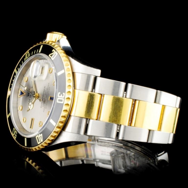 Estimated Retail Replacement Value: $28,990.00Ref: BAS30000Item no.: ARXAA-002Specification:Documents: Appraisal ReportModel: Rolex SubmarinerMovement: Perpetual, Self-windingCase Material: Stainless SteelBracelet Materials: Stainless Steel & Yellow GoldBracelet Style: Rolex Oyster, Flat Three Piece LinksBezel Material: Yellow GoldBezel Style: Unidirectional rotatable 60-minutes BezelWinding Crown: Rolex screw down, Triplock triple waterproofness system / Water Resistance 330ft.Winding: Bidirectional self-winding via Perpetual rotorDial: *Custom Silver ÒSertiÓ Jeweled Dial Crystal: Scratch-Resistant Sapphire, Cyclops lens (2.5x) over the dateCondition: Pre-Owned / Excellent ConditionAdditional Information: All custom works are performed according to industry standards. ÒCustom madeÓ in the listing means that the part(s) is custom designed and crafted by highly qualified watchmaker for Rolex watches, but are not original Rolex factory made. Great Condition - Shipping notes: We ship 4-10 Business day after the clearance of payment. Tracking numbers are emailed once the package(s) are shipped. Most shipments are sent by FEDEX Priority, UPS Priority, or US PRIORITY MAIL INSURED