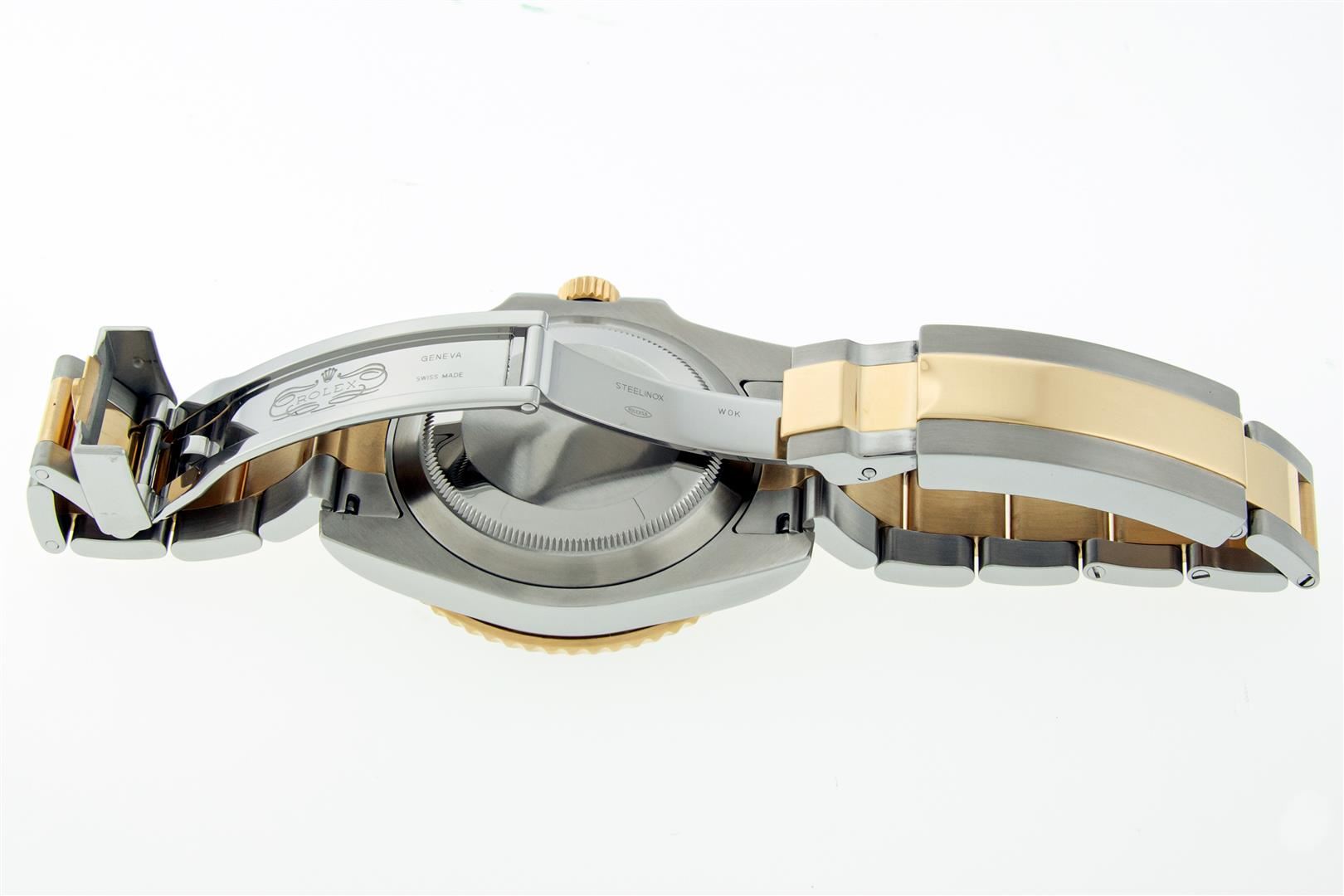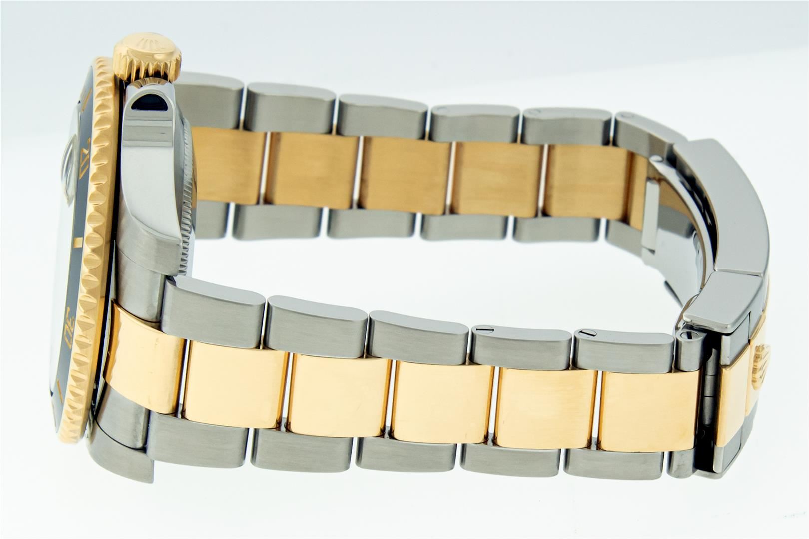 One Mens New Style Rolex 18K Yellow Gold And Stainless Steel Submariner Polished Bright with Satin Finish, This Watch Has Been Serviced & Electronically Tested, Stainless Steel Case: 40mm, Original Bezel: Rolex 18k Yellow Gold Rotatable Bezel With Black Ceramic Insert. Crystal: Original Sapphire Crystal. Hands: Original Rolex Luminous hands. Movement: Automatic Movement 3135 With 31 Jewels. Dial: Rolex Factory Black Submariner Dial. Functions: Date, Rotating Bezel. Model: Submariner 116613 Random Serial. Condition: G-6 Extra Fine. Bracelet: 18K Yellow Gold And Stainless Steel Oyster Band. Bright Polish & Satin Finish. 7.00 Inch Length, Adjustable. Flip Lock Clasp with Rolex Logo. This Watch Has Been Serviced Time Tested And Is In Excellent Condition It Is Free Of All Scratches And Dents. This Watch Comes With A Rolex Box and Rolex Booklets.