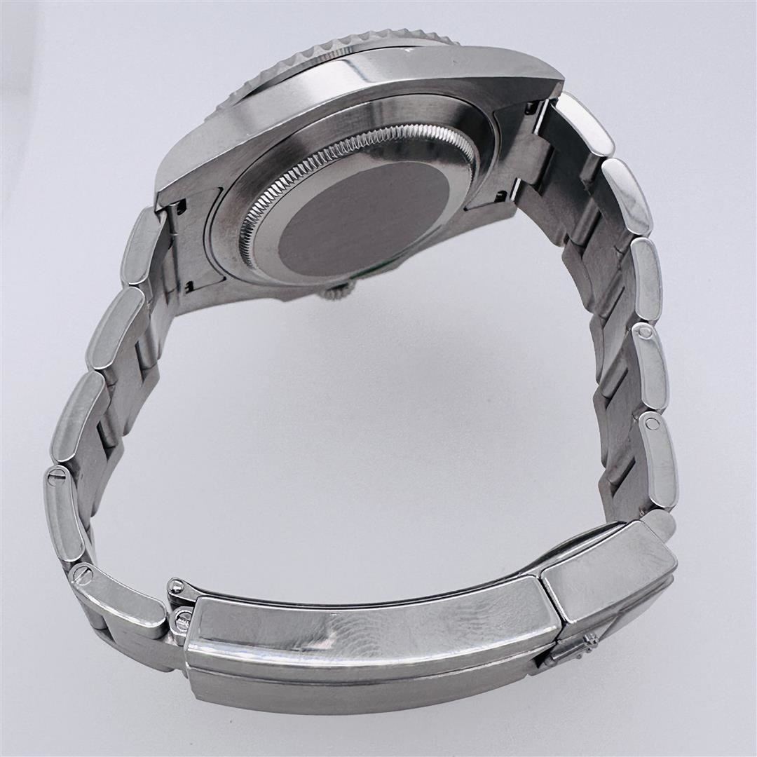 This Rolex timepiece is a highly coveted variant of the cherished anniversary Submariner, distinguished by the presence of Rolex's signature green hue on both the bezel and dial. This exceptional diver's watch is a coveted item for collectors and can be proudly owned in its exceptional Rolex condition, complete with its original box and papers. Affectionately referred to as the "Hulk," this iconic green Submariner boasts a modernized case design that includes a larger crown guard and thicker lugs, even though it maintains the classic 40mm diameter found in its predecessors. This update results in a slightly more substantial wrist presence when worn. Furthermore, this edition of the Submariner showcases a contemporary bracelet with polished center links and enhanced structural integrity. In its entirety, the "Hulk" lives up to its impressive moniker, commanding attention with its commanding wrist presence and the enchanting green bezel and dial that have become its defining features.